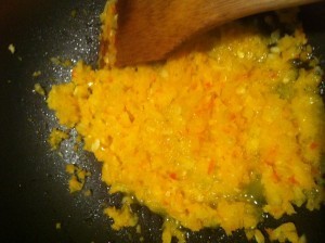 Then I sautee the aromatics in olive oil, and they become the perfect meal starter.