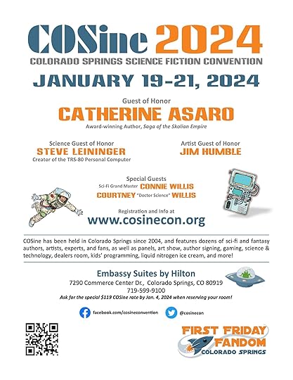 I'm having a great time at COSine! It's such a delightful convention with wonderful people. And they have the best name ever. firstfridayfandom.org/cosine/