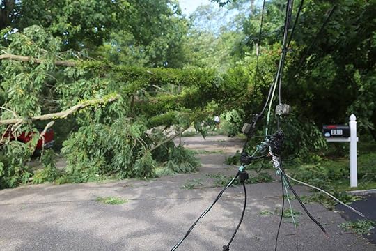 Trees and power lines are down everywhere. I'm typing this from the local Starbucks, one of the few places in our area with both power and a working Internet connection. The power company tells me I won't have power until Friday afternoon! We lost power yesterday, Tuesday, at about 2pm.