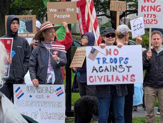 A few hours ago, we were standing at the edge of Battlefield Green in Lexington, Mass., where the American Revolution began. This time, it wasn’t King George we were fighting, but the man whose obsession with destroying everything that makes America great is crushing the life out of our democracy. We stood with a large crowd, in one of the countless No Kings rallies being mirrored in cities and towns across the country. It was completely peaceful, and in a quiet way, uplifting.