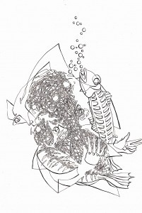Serkan Yüksel resimlerin bazılarında şiddeti öne çıkarıyor, bazılarında oldukça geriye atıyor, ama her zaman şiddeti resmin ve dilin bir parçası olarak algılıyor. Bir Julio Cortazar hikâyesinden çıkışla hem kendine kızgınlığını ve sertliğini gösteriyor hem de Borges’te olduğu gibi Latin Amerika edebiyatına gönderme yapıyor.