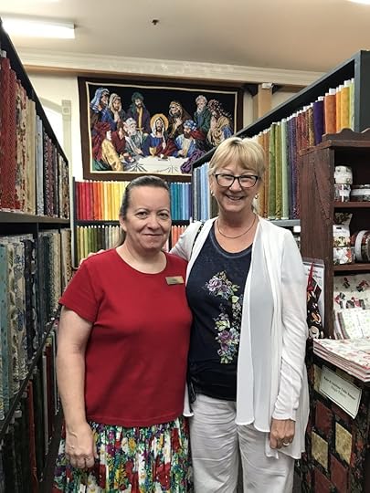This is a picture of me with Kris Stutzman who, for many years, ran Lolly’s Fabrics in Shipshewana.