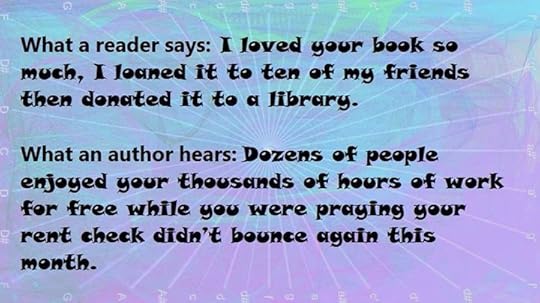 Sometimes even well-meaning readers don���t understand. We writers are glad you liked our book. Also, yes, if you buy a copy of a book, you should be able to loan it out or give it away, but please think about the author when you make choices about how you do that.