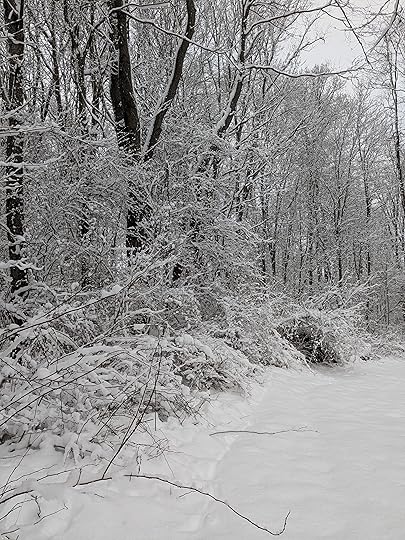 I wrote this poem some time ago, but it works now too, except for the line about summer! I took this snowy picture two days ago and the snow is still falling and it’s beautiful beyond words.I could write a poem about stopping by the woods on a snowy evening, but