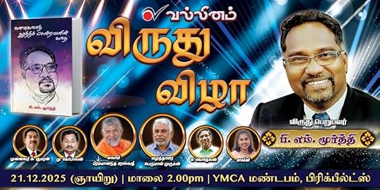 எனது நேசத்திற்குரிய நண்பரும் மலேசியாவின் மிகச்சிறந்த கல்வியாளருமான பி.எம். மூர்த்தி இந்த ஆண்டிற்கான வல்லினம் விருது பெறுகிறார். டிசம்பர் 21 அன்று மலேசியாவில் வல்லினம் விருதளிப்பு நடைபெறுகிறது.