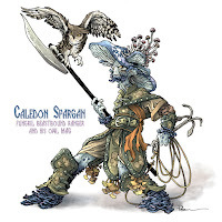 So-far our group (which happen to be the same friends I made into The Gilkey Warlocks) have gotten together to make our characters. Here is mine Caledon Spargan. And below I'll break down the character art for him.