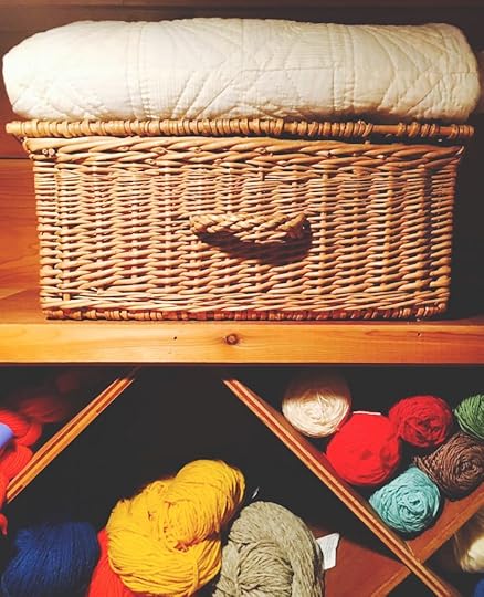 And here’s that quilt Rachel never finished that is currently on the tippy-top shelf of her yarn room: