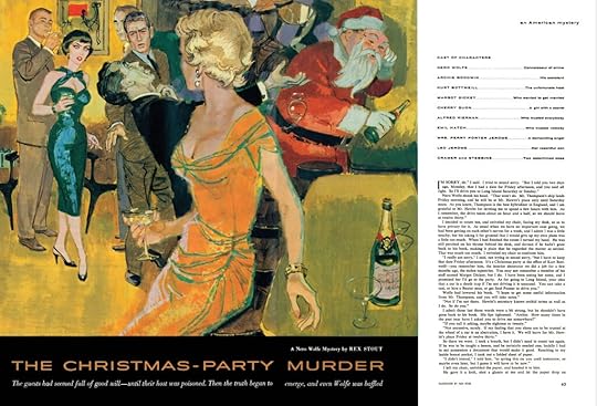 magazine (January 4, 1957). By Crowell-Collier Publishing Company; Alex Ross, illustrator – Self scan from Collier’s for January 4, 1957 (pp. 62–63), Public Domain, https://commons.wikimedia.org/w/index.php?curid=64955236Crossing the Pond, prolific American mystery novelist Rex Stout subjected his fastidious but brilliant private investigator Nero Wolfe to the indignity of attending a Christmas party in costume, upon which the host is bumped off. A Christmas Party was a short story, and is best enjoyed as episode 9 in Season 1 of the wonderful A Nero Wolfe Mystery series produced by A&E in 2001.