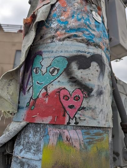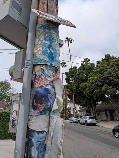 Today, I was out for a minute and saw this little art installation on a telephone pole. It was weathered quite a bit; it’s been here for awhile. And it was beautiful to me. It was a few moments better spent than they would have been looking at anything on my phone, or anything I could have been listening to. It wasn’t dysregulating, it didn’t increase my internal DEFCON level.