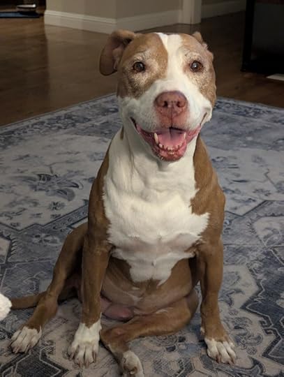 I remember saying, “I don’t think I will ever have another dog who isn’t a pittie. He is so sweet, and affectionate, and so gentle, and …” I stopped because I saw a volunteer walking a puppy toward us. She was tiny and underweight, but she had the biggest smile. I knelt down to meet her, and she did a somersault into my lap, wagging her tail so fast I couldn’t see it.