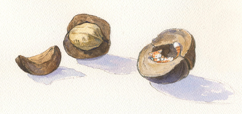 And she’s crafty too. The hickory nut is a clever arrangement of nimble hinges that lead to the treasure within.