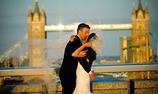 Saber Miresmailli took a photo of London-based bride Laura Demack, 32, who works in marketing, and James Egan, 34, an art director, as they shared a kiss in front of Tower Bridge in the capital.