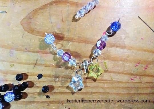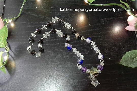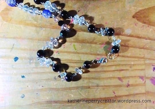 In choosing my beads, I picked beads that made me think of the night sky. I organized my lighter color beads to be near the stars and my darker color beads to be near the end of the necklace. I did this to represent the sky being is lighter around the stars and darker further away.