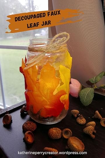 Another cute decor perfect for the fall vibe! I made this one by using an old grape jelly jar and decoupaged faux leaves on the outside of the jar using Mod Podge. (The faux leaves were left overs from the ones I bought for the flea market crafts two years ago.) To finish it off, I placed some acorn tops at the bottom of the jar and tied a few strands of jute around the opening. (And if I had had a battery operated candle, I would have added that too.