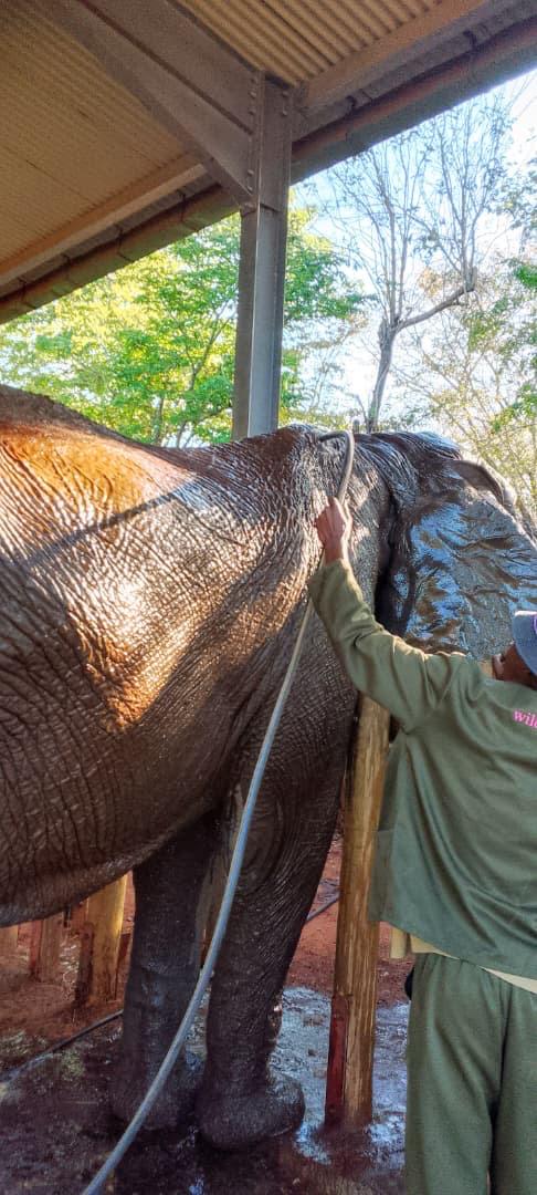 Photo: special spa treatment for herd matriarch Moyo