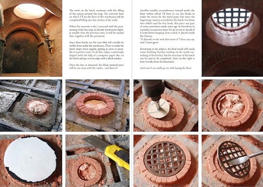 Creazione dei mattonciniStrutture in cemento armatoPavimento a spina di pesceMurature in mattoniScala in mattoniLavorazione dell'ardesiaArchi a tutto sesto in mattoni e pietraVolte a botte e a crociera con relative strutture provvisoriePilastri in pietra e cementoColonne a rocchi con capitello sferocubicoInferriate con fil di ferro intrecciato o battuto a freddoTorce a muro semplici o a ledElaborazione del progettoPiante, studi e sezioniGalleria fotografica delle architetture che hanno ispirato il progetto