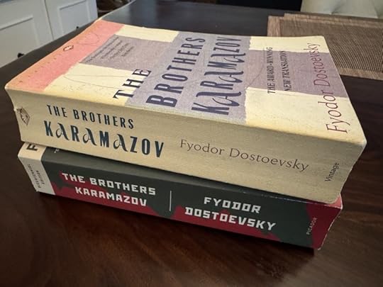 However, I did not realize that a revised version of the translation had appeared in 2021 — and that’s the one the bookstore ordered for my students. If the text had remained the same, I probably would’ve used my old version and identified the page numbers of the key passages for the new edition. But sometimes the actual words are different, dadgummit. (For example, where in the previous version old Karamazov claimed to love his own “wickedness,” in this one he claims to love his own “filth.” I do wonder how many of the changes are responses to Morson’s critique.) So now I’m having to transfer all my annotations and highlights from the old copy to the new, which is tiresome but probably good for me.