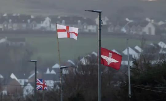 The road I grew up on in Drumahoe, on the outskirts of Derry, has been on the news lately, and not in a way that makes me proud. Journalists stand at its junction with the main road from Belfast, pointing up at the purple flag of the Parachute Regiment fluttering high on a lamp-post. They explain its significance at this time of year: it was paratroopers who killed 13 unarmed civil rights marchers in the city on Bloody Sunday in January 1972. Family members of those killed have talked about the pain the flying of these flags causes them. Politicians, including some unionists, and even the Parachute Regiment itself have called it “unacceptable”.