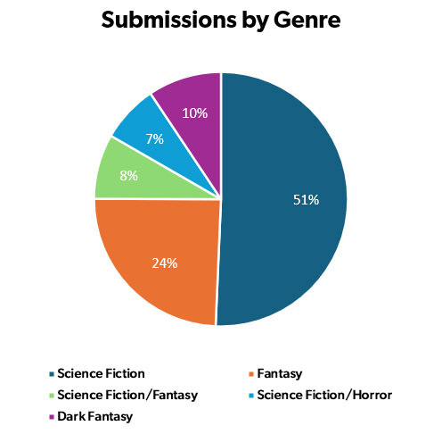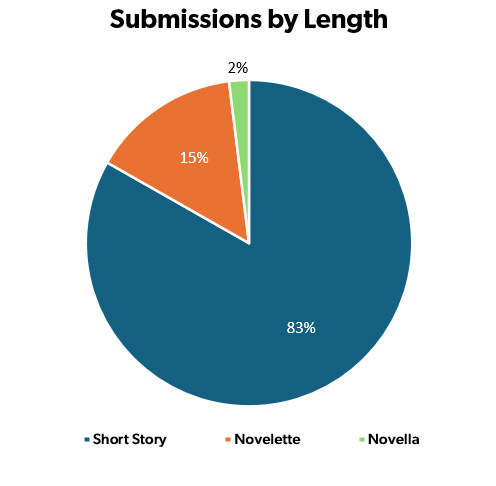 In 2025, we received submissions from 133 different countries, the majority (60.5%) coming from the United States. The top ten countries (in order: United States, United Kingdom, Canada, Australia, India, Nigeria, Germany, Brazil, Netherlands, Japan) represent 86.3% of all submissions. The percentage from the US has hovered around 60% for the last few years. The number of countries does fluctuate and is monitored on a regular basis. While the amount of time we have to spend dealing with “AI” has temporarily derailed our efforts to hold short submission windows in other languages, it is something we’d like to get back to as it yielded very positive results.