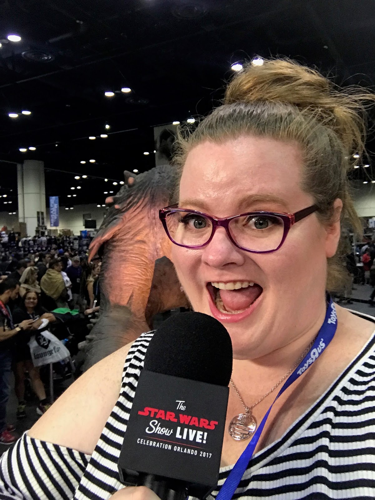 It was such an amazing experience. I was with my publicist, walking around the main floor, exploring the con, and it's like, as one, everyone stopped. The group knew. Every face turned to the screen to watch the panel. It was a huge, shared experience with all these fans, and that made it so much better. I loved as the new character Rose was revealed, as Mark Hamill called Daisy and John his children, as the director talked about taking pictures of the set, as they all spoke of filming with Carrie Fisher.