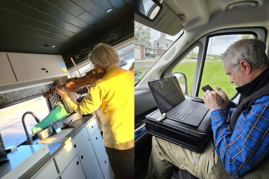 Mary and I have had a delightful season of campervanning this year, with me writing as we travel and her learning to play the violin (see pictures!). We’ve made trips to see family in Pennsylvania and Utah, a 40th anniversary excursion to explore geology and attend the WorldCon in WA, and now we are on the road to Kansas for perhaps our last excursion of the season to attend the funeral of a dear friend’s mom. This last excursion has gotten me to thinking about what is most important in the adventure of life and how that importance should be reflected in art, music, and literature.