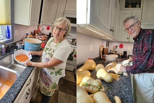 3) Finally, the joy and journey of life shared is an essential element to finding personal meaning and nurturing the soul. This fall, Mary and I put up lots of garden produce together, including carrots and a first try at canning squash, seen in the pictures below. The visceral experience of the outdoor garden, planting and watching things grow and putting food up for the winter, places us squarely in the adventure of life together, a relationship like no other, as I mention in my Little Book of Gardening in Northwest Minnesota!