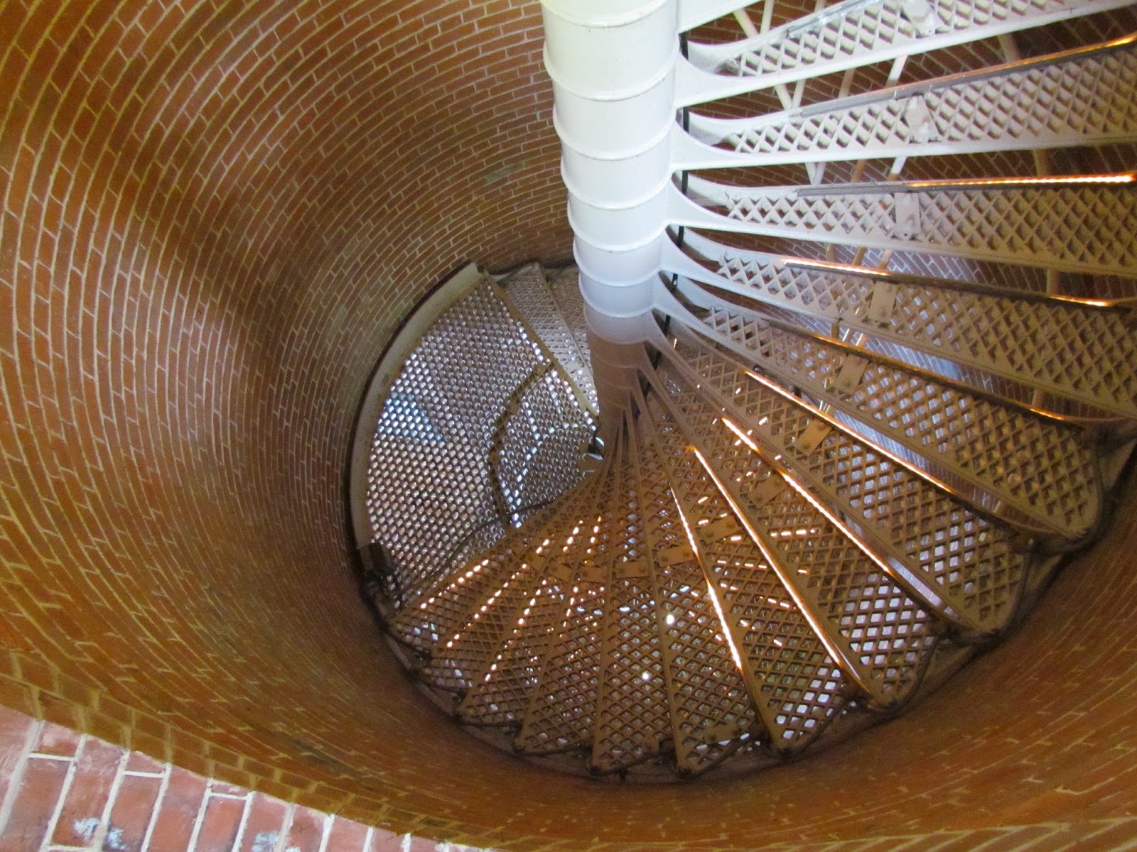 A few years ago my significant other and I took a vacation to Cape May, where there’s a gorgeous lighthouse open to the public. It’s a tall, slim building, and to get to the top means climbing 199 steps on a narrow spiral staircase. The stairs aren’t solid, either. They’re made of an open-work metal. Essentially, at any point in the climb, you can look straight down, pretty much to the bottom.