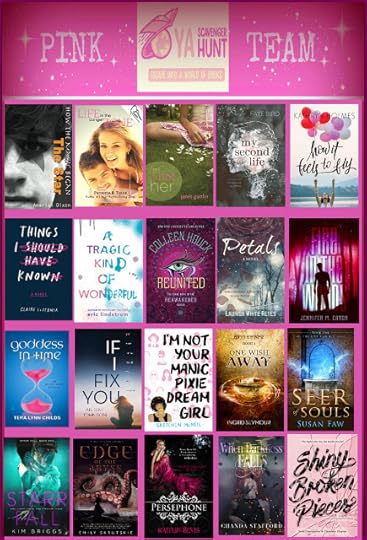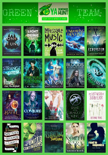 Go to the YA Scavenger Hunt page to find out all about the hunt. There are SIX contests going on simultaneously, and you can enter one or all! I am a part of the GREEN TEAM--but there is also a red team, a gold team, a blue team, a purple team, and a pink team. Enter each team's contest for a chance to win a whole different set of books!