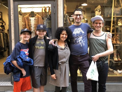 Nevertheless, we were determined to take a walk down memory lane: we headed for the Ponte Vecchio, visiting Ugo Gherardi’s jewelry shop. Now ten years older than when I saw him last, Ugo himself was there and happy to see us — and especially proud to encounter two of the grandchildren. Here, again, there are connections going back generations, as both Ugo’s grandfather, and my grandfather, the boys’ great granddad, had known and done business together. We bought a few gifts to mark our visit, and got some great views of the famed bridge. We’ve all seen medieval bridges with buildings built on on them, but it was Mathew’s and the boys’ first time actually walking on one.