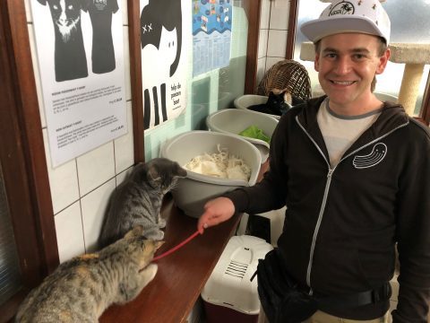 Later that day, Mathew and I indulged another fixation: at this point we’ve been to cat cafés on three continents, and as proud caretakers of a cat and dog of our own, we seek out such spaces wherever we can. Well, Amsterdam’s got its own entrant that even predates the Asian-originated cafés: a canal boat that serves as animal shelter and tourist attraction. We arrived at De Poezenboot not long before they were set to close—cats being cats, the place is open to the public only two hours a day. Pro tip: arrive when it opens. After navigating the short line, we entered the floating structure, where cats of all shapes and sizes do their thing. A few were still in carriers, recent rescues that were still acclimating to their new surrounding. Though one burly, longhaired tabby—echoing our own fearless, independent Khaleesi—was meowling loudly until the place stopped admitting visitors, at which point he and his compatriots were let loose in the facility. While the other cats cautiously stepped out of their pens, he bolted like a racehorse and proceeded to run laps around the place.