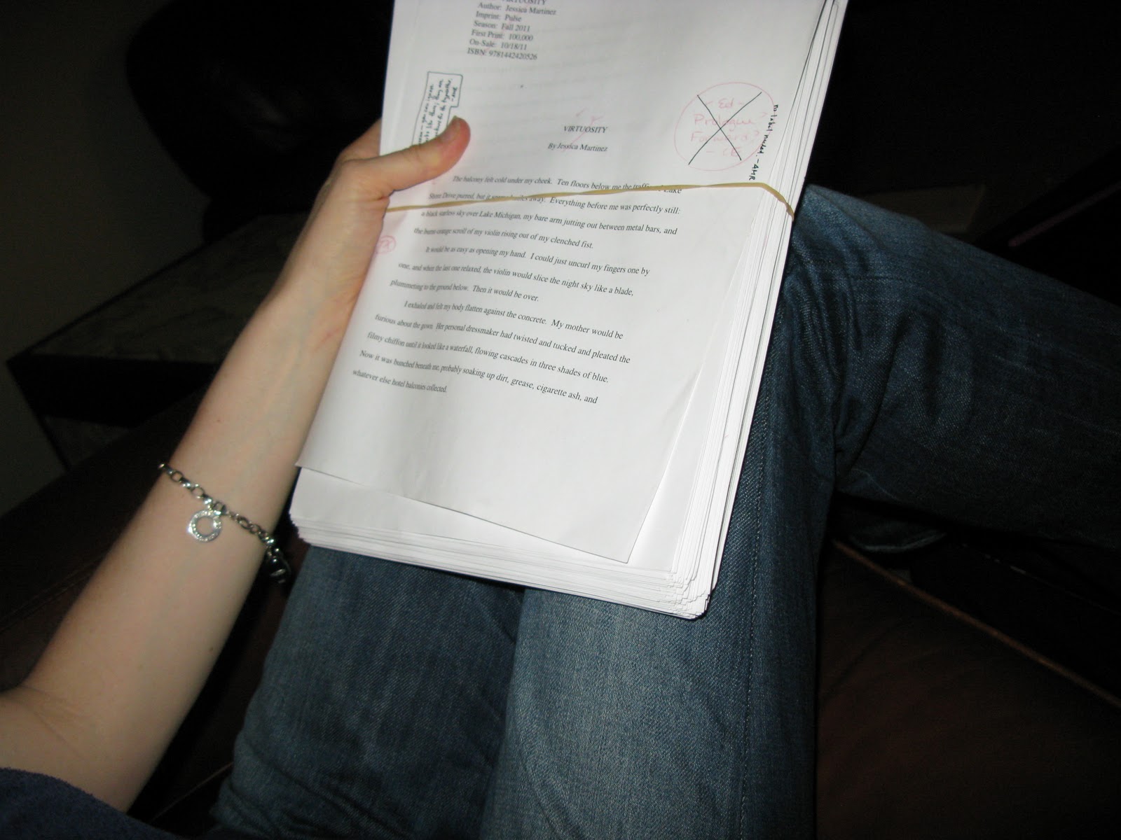 VIRTUOSITY, fresh from copyedit land, ready for me to work my way through! I felt like a starving five-year-old who'd been given broccoli and a candy bar, and told do the right thing.