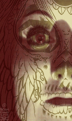 I am beyond excited to finally show you guys the collaboration I did with Brian Ewing! I’ve been a huge fan of Brian’s for longer than I can remember- we met at San Diego Comic Con, and here we are years later with this little offering to the ancient gods! It’s amazing to work with someone that you not only admire as an artist, but someone who is an all-around rad person to boot! When Brian asked me if I wanted to collaborate I jumped at the chance! Never mind that I was in Scotland with none of my normal supplies, equipment and reliable internet connection- oh no, that wouldn’t stop me from finally working with Brian.He sent me some sketches of what direction he was thinking of going with this, and a few pics of Countess Marya Zaleska from the film Dracula’s Daughter, and then I sent him my contribution— when he sent me the final poster, it floored me! It went in a direction I don’t think either of us expected, but we are both really psyched on the results. I’m really proud of it!And for those of you not familiar with Brian Ewing’s work, go check it out. He’s a monster with a brush, controlling it with a mastery I can only ever dream of achieving. A true wizard of the ink! And damn, he can draw the shit out of a skull.\m/ forever