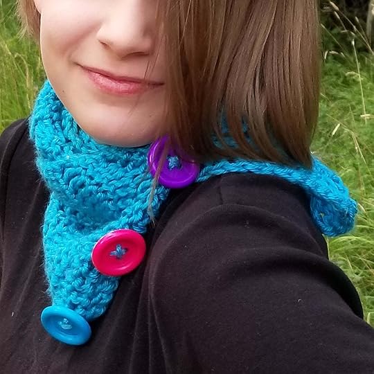 Turquoise Neck Warmer with Colorful Buttons, Crochet Soft Winter Scarf, Hand-Knit Ladies Scarf | READY TO SHIP