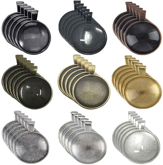 I found that I loved doing them so much that I want to try my had at other designs. But rather than buy kits, which are mostly flowers, I want to create my own designs. So I bought these Bezel Pendant Trays with glass cabochon from Amazon.