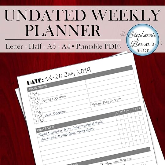 This printable Undated Weekly Planner is based on my writer’s planner weekly planning pages and comes in 4 sizes: Letter, Half, A5, and A4.