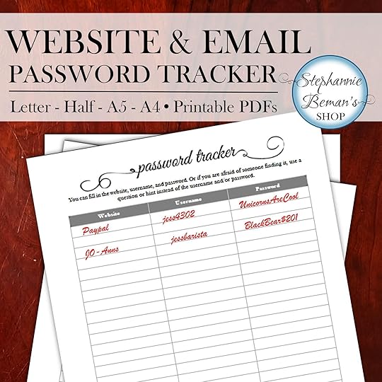 Last on the list is the Printable Website & Email Username & Password Tracker. I actually have a small book that I keep this information in, but I created this tracker for my dad before he passed away to help him keep track of all those pesky websites with the usernames and passwords that went with them.