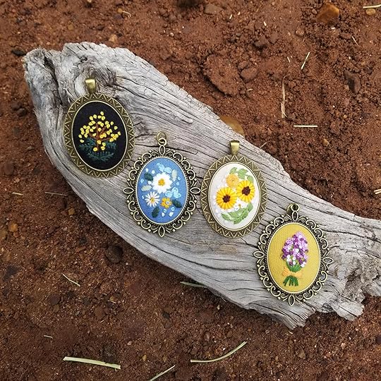 I’ll also be trying another scenic design of a mountain and forest to see if the lighter colors will make a difference. But I’m coming to think that what I want to do is just too small and detailed for the 1 inch size. If that is the case, then I’ll work on my other ideas and purchase some larger pendants to use with the scenic embroidered jewelry.