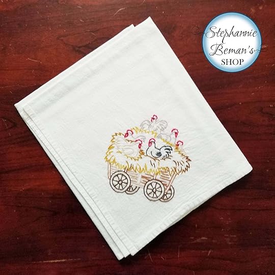 Hand embroidered tea towels are one of my mom’s favorites. She likes the cute pictures in the corners that make a dish drying towel more fun. This was one of those things that I learned from hubby’s grandma when I first moved to Wyoming and something that I still love doing.
