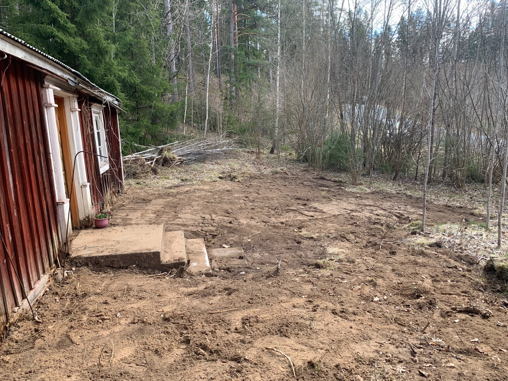 Now the area is flat and even, and I can start repairing/replacing the siding. The only thing that didn't work out according to plan is the plant that was on the side of the house; emotionally I would have liked to keep it, but intellectually the guy with the machine did the right thing.