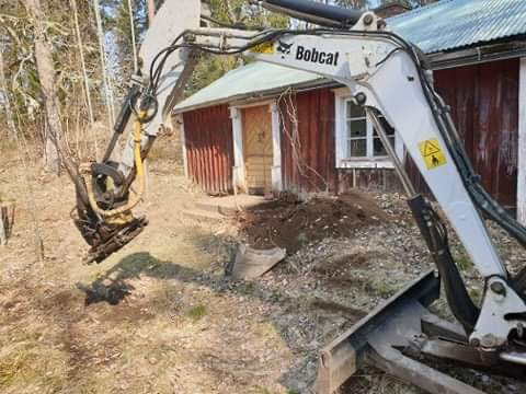 Today was the day: a gigantic machine in the yard of Project Cottage. I intended to be there to take some photos, but I had to take my kitty to the vet, so the guys driving snapped some shots for me instead. Gräv och Allservice i Virserum did a fabulous job, and I'm certain that if I kept going by myself it would have taken until 2023.