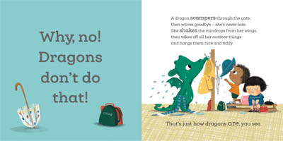 I actually think this format works brilliantly as it gives young children a chance to think about how they might behave in certain situations. Or perhaps how their friends or siblings might behave. Children love to take the moral high ground and the When a Dragon books give little ones a perfect opportunity to identify the right way to go about things. It also gives us, as creators, an opportunity to inject a great deal of humor into the story and to show that, just like the little dragon, we are all still learning!