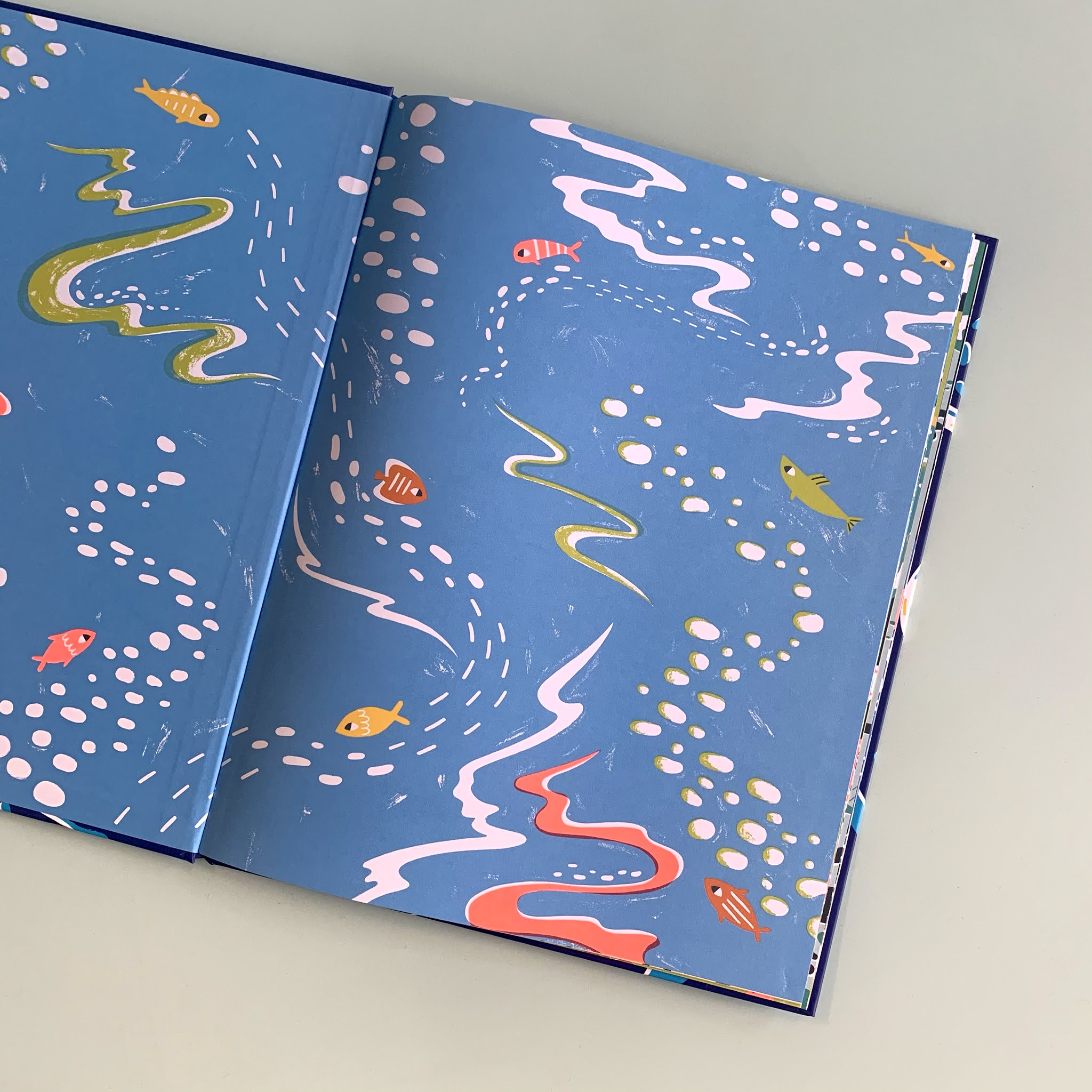 Bethan: Well, I’m really proud of the project as a whole, because it pushed me to think outside the box and come up with something really fun and unique! But what i’m most proud of is the amount of movement I’ve been able to illustrate in this book. My illustration is very flat and static, and it was a real worry for me at the beginning of the project. How was I going to illustrate the oceans and seas, which are busy and brimming with life and movement?! But I rose to the challenge, and spent a really long time studying videos of water, bubbles, waves, swimming fish, seaweed, currents, coral and much more. This helped me endlessly throughout the book, as I was able to give the oceans much more texture and movement. It was certainly a lot of work, but I couldn’t be more proud of how I have brought the oceans and seas to life with my own drawings!