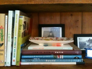 This photo shows part of my bookshelf ~ next to the desk. Most of my books are still packed away as Big G would give them to charity if they were out. He doesn't like clutter :) As you can see, I like a bit of a decorating book when I'm not reading Chicklit. The plate was given to me by Big G for Christmas one year. It's got very dainty little flowers all over and is antique. I have quite a collection of them but they're packed away as our house is a bit modern. Behind the plate it a pic of me when I was four and one of G and his naughty trio of brothers. SO CUTE!So what do you think of my room? What do you have in your writing space?