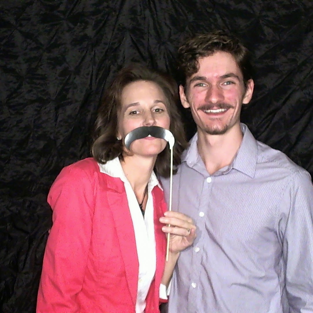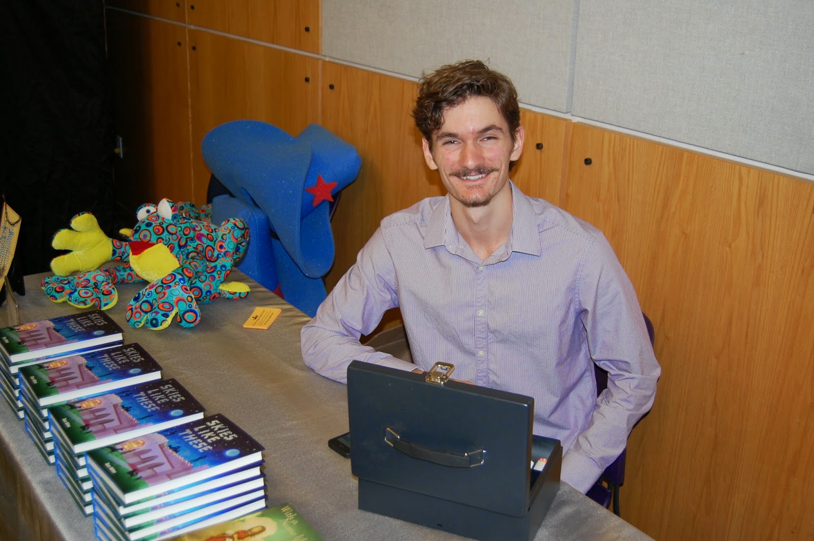 Noble from The Kings English Bookshop came down from Salt Lake as our bookseller.  The frog and foam hats you see in the background were give aways too.  He was such a good sport, especially when I dragged him into the photo booth for a 'matching moustache' pic....