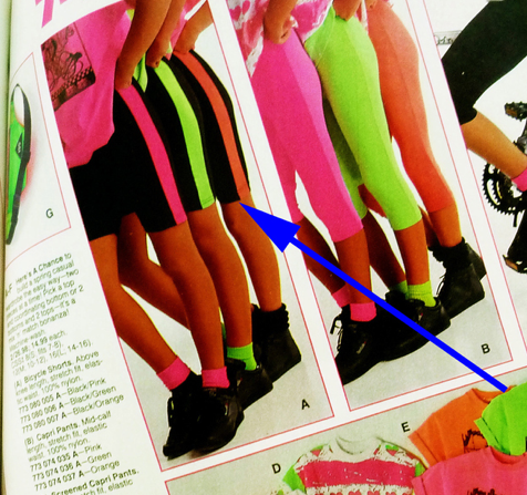 Spandex pants in 3 lengths - long pants, capris, and shorts!Actually the biker shorts thing was HUGE - men and women both got into it!If a woman wearing spandex shorts "might as well be naked"