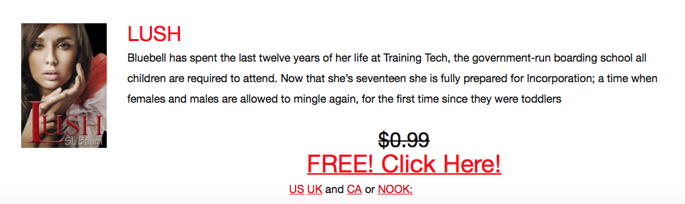 By the end of the day, LUSH had risen to the top of its category (YA Dystopian) in the Top 100 Free book list on Amazon.
