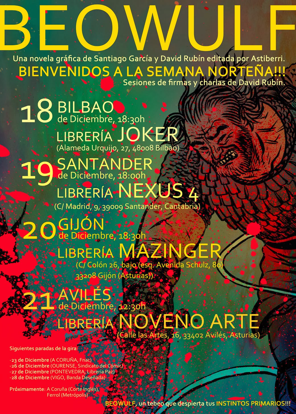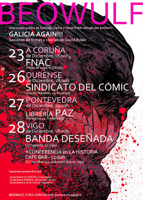 Y tras coger fuerzas volviendo a casa por navidad, el 26 nos veremos las caras en SINDICATO DEL CÓMIC, OURENSE, para, sin apenas pausa, firmar ejemplares el 27 en PONTEVEDRA (Librería PAZ) y el sábado 28 en VIGO (Librería BANDA DESEÑADA).