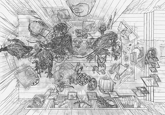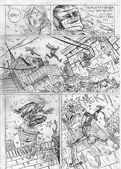 En esta obra, a diferencia de con "The Rise of Aurora West" no trabajé con bocetos previos ni hice storyboard de las páginas, el lápiz que veis aquí es el definitivo, fui creando la narrativa al mismo tiempo que me enfrentaba a la página en blanco.