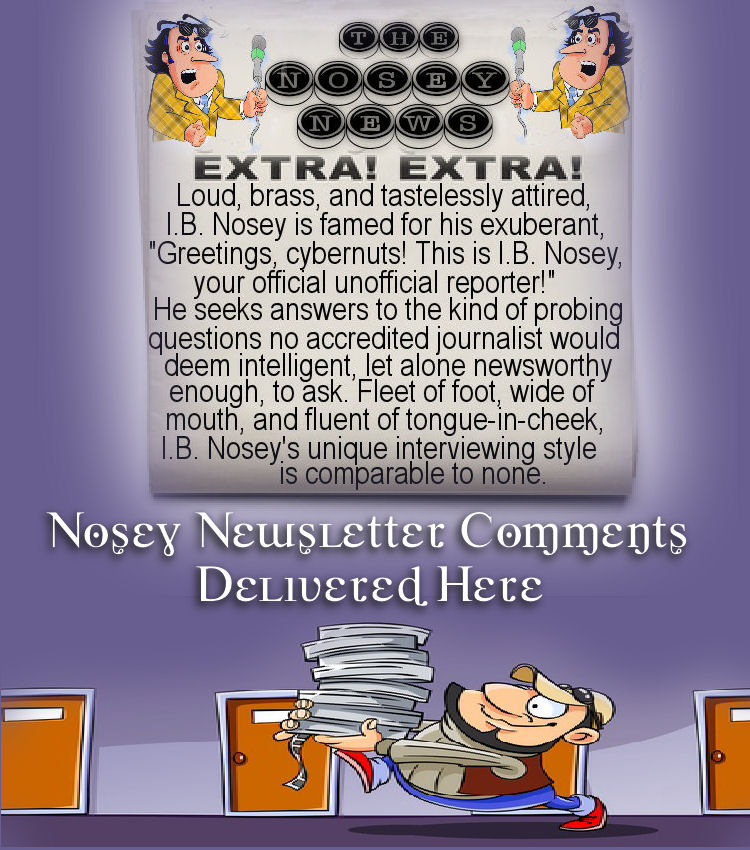 Greetings, cybernuts! This is I.B. Nosey, your official unofficial reporter!