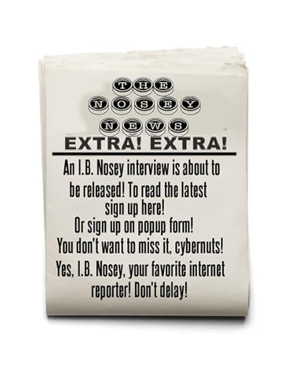 Set your time and calendars to Monday, June 10, 2019, cybernut fans! Behold, a new I.B. Nosey newsletter cometh your way! With a guest star interviewee, heh heh. Of course, guest stars enjoy speaking into my microphone - it's just so - uh, great! Yeah, great!You want to be able to read this interview, Nosey nutty fans. And how do you do that? Why, you sign up for the newsletter! And it'll get delivered right to your door - or to your computer - or to your phone - how do I know what you're usi...
